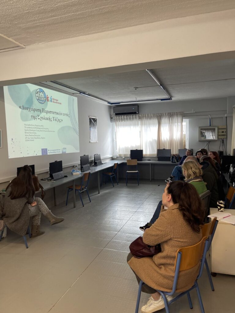 Ο Δήμος Ραφήνας Πικερμίου, στο πλαίσιο της λειτουργίας του Προγράμματος «Κέντρο Κοινότητας», πραγματοποίησε την Τετάρτη 04/02/2026 ένα εκπαιδευτικό βιωματικό εργαστήριο με τίτλο: «Διαχείριση Περιστατικών εντός της σχολικής τάξης» στους εκπαιδευτικούς του 3ου EK Ανατολικής Αττικής (Ραφήνας).