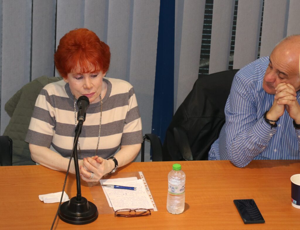Στην ομιλία της, η Αρετή Γεωργοσοπούλου ανέλυσε τη θεματική της πατριαρχικής οικογένειας και των κοινωνικών ριζών της βίας, προσεγγίζοντας το θέμα με επιστημονική τεκμηρίωση και κοινωνική ευαισθησία. Παράλληλα, ανέδειξε τις ιστορικές και κοινωνικές μεταβολές που επηρέασαν τις σχέσεις των φύλων, δίνοντας ιδιαίτερη έμφαση στη σημασία της γνώσης, της αυτογνωσίας και της συλλογικής δράσης για την αντιμετώπιση των φαινομένων βίας.