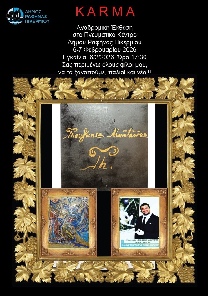 Αναδρομική έκθεση στο Πνευματικο κέντρο του Δήμου Ραφήνας – Πικερμίου 6 -7 Φεβρουαρίου 2026. Εγκαίνια απόψε στις 17:30.