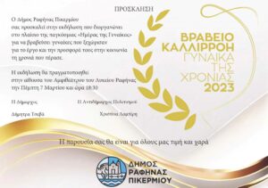 Γυναίκες που έχουν ξεχωρίσει για το έργο και την προσφορά τους στην κοινωνία, βραβεύει ο Δήμος Ραφήνας-Πικερμίου, στο πλαίσιο της «Παγκόσμιας Hμέρας της Γυναίκας» σε εκδήλωση που διοργανώνεται για πρώτη φορά στην πόλη μας.